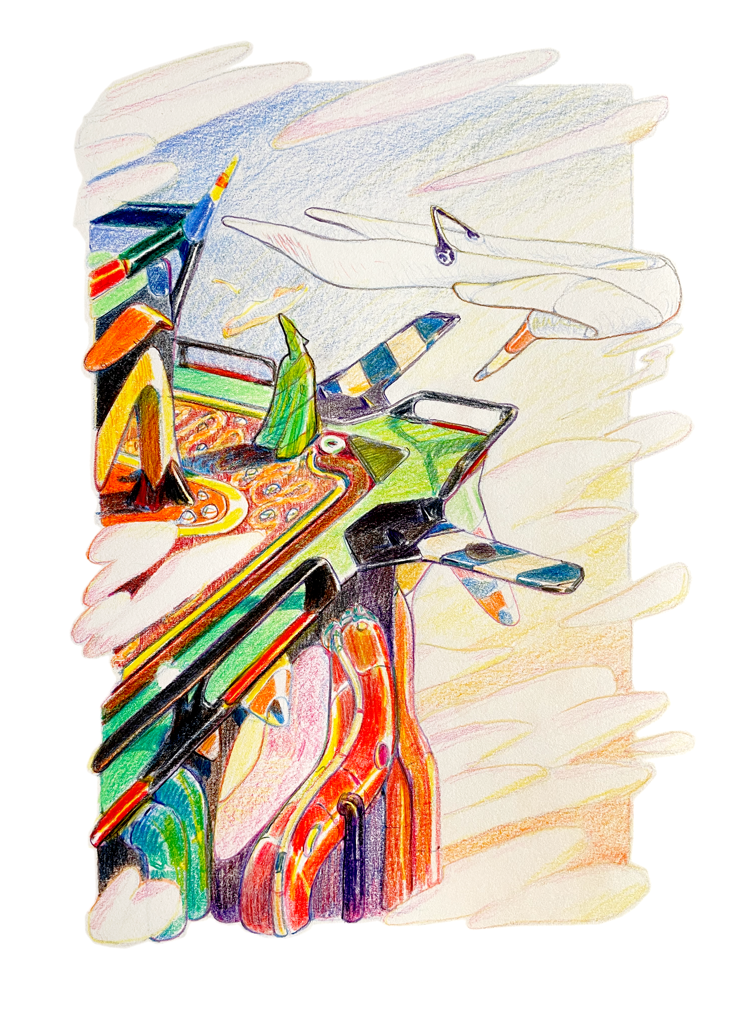 Ongoing illustration project exploring the juxtaposition of science-fiction and fantasy. Traditional media.